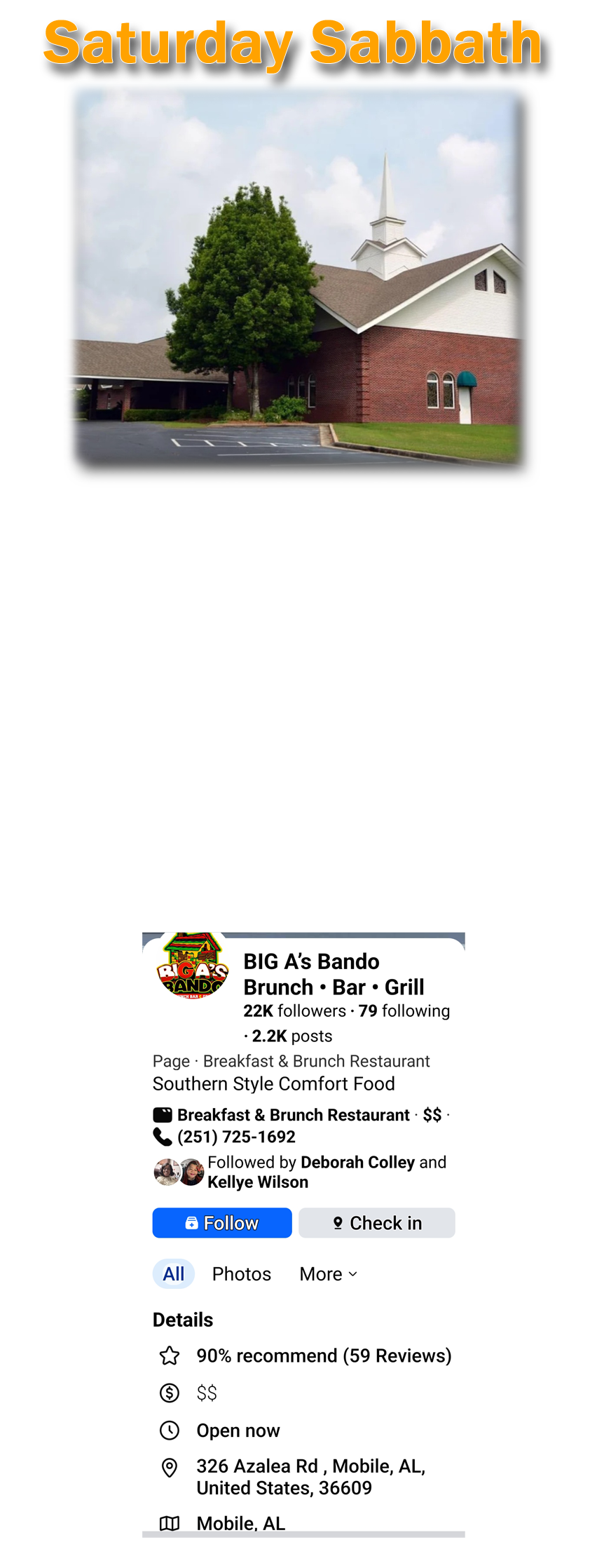 The address for the church is 324 59th Street Fairfield AL 35065